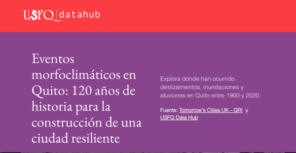 El pasado martes 2 de abril se presentó un nuevo aluvión en sector de La Gasca dejando como saldo 1 muerto. Este fue el séptimo desastre natural ocurrido en esta zona en los últimos 124 años. Así lo demuestra la investigación histórica a la cual la comunidad puede acceder de forma gratuita en el mapa interactivo y la base de datos https://www.usfqdatahub.info/ herramientas creadas por el proyecto Tomorrow´s Cities UK- GRI y el USFQ Data Hub