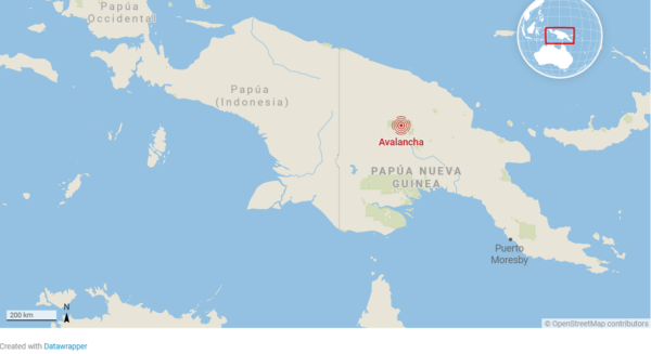 Sídney (Australia) (EFE).- Más de 2.000 personas han quedado enterradas por la gran avalancha que asoló el viernes una remota localidad del norte de Papúa Nueva Guinea, según el Centro Nacional de Desastres, mientras las tareas de rescate se complican por la inestabilidad del terreno y el difícil acceso a la zona.