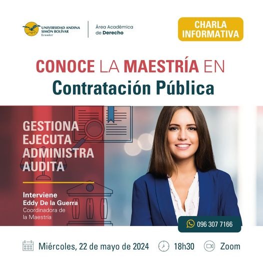 ¡Descubre tu camino hacia el éxito profesional con nuestra charla informativa sobre la 𝗠𝗮𝗲𝘀𝘁𝗿𝗶́𝗮 𝗲𝗻 𝗖𝗼𝗻𝘁𝗿𝗮𝘁𝗮𝗰𝗶𝗼́𝗻 𝗣𝘂́𝗯𝗹𝗶𝗰𝗮! Conoce todos los detalles y ten la oportunidad de resolver tus dudas directamente con Eddy De la Guerra, la coordinadora del programa.