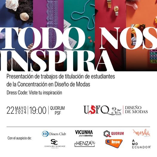 👗 Te invitamos al desfile de los proyectos de titulación de nuestros estudiantes de Diseño de Modas promoción 2024 👠 Este año, disfrutaremos de una pasarela que nos sumergirá en el proceso creativo de cinco diseñadoras y sus colecciones finales, junto con dos alumnos ganadores del concurso interno Ciclo, y el ganador del concurso Ecuatextil 2024. 🎉