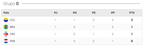 Hay que tener en cuenta que clasificarán los dos primeros de cada grupo y Brasil jugará la última fecha del Grupo D contra Colombia en el Levi’S Stadium de California el martes 2 de julio, por lo que necesitará tener un resultado positivo contra Paraguay para no arribar a esa definición con gran riesgo de quedar afuera de la competencia.