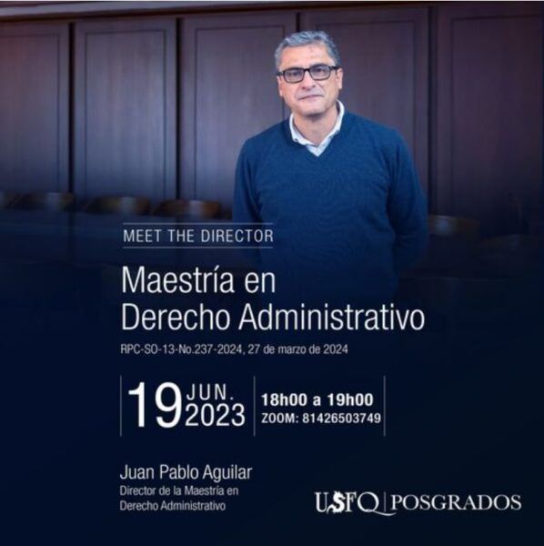 🎓 ¿Estás interesado en conocer más sobre la maestría en Derecho Administrativo de la USFQ? Únete a nosotros para conocer a Juan Pablo Aguilar, Director de la Maestría, en nuestro próximo Meet the Director a través de Zoom. Regístrate ahora 👉 https://forms.gle/P5ao9j3teXkpZsiS9