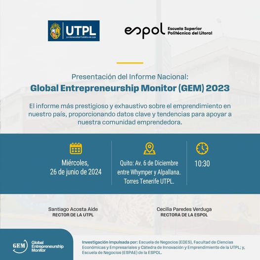 🔍📈 Descubre los hallazgos más recientes y relevantes sobre el estado del #emprendimiento en Ecuador 🇪🇨 en la presentación del informe nacional del Global Entrepreneurship Monitor #GEM2023, el estudio más prestigioso de emprendimiento a nivel mundial.