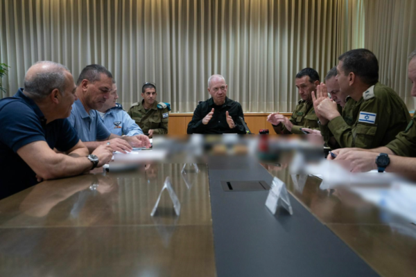 El ministro de Defensa israelí, Yoav Gallant (c), se reúne con el jefe del Estado Mayor, Herzi Halevi (3d), y otros oficiales. EFE/Oficina del primer ministro de Israel