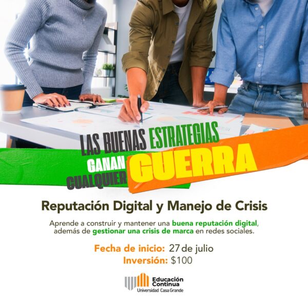 Reputación digital y manejo de crisis: Comprender la importancia de la reputación digital, entender los posibles riesgos y gestionar las crisis de manera efectiva es el objetivo de este evento. Anímate y aprende a gestionar bien las redes sociales. ¡No te lo pierdas!