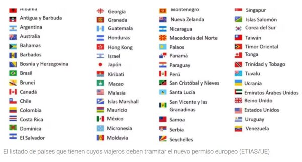 Los nacionales de cualquiera de estos países exentos de visado deben solicitar una autorización de viaje ETIAS: