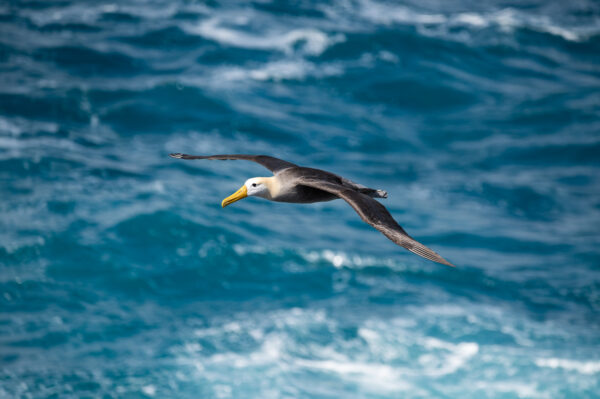 Al repertorio se suma, por temporada, el albatros ondulado. Entre abril y diciembre, el ave más grande del archipiélago vuelve a la isla para anidar. Pese a registros limitados en la isla de la Plata, frente a la costa continental ecuatoriana, el albatros ondulado es un estandarte de Española.