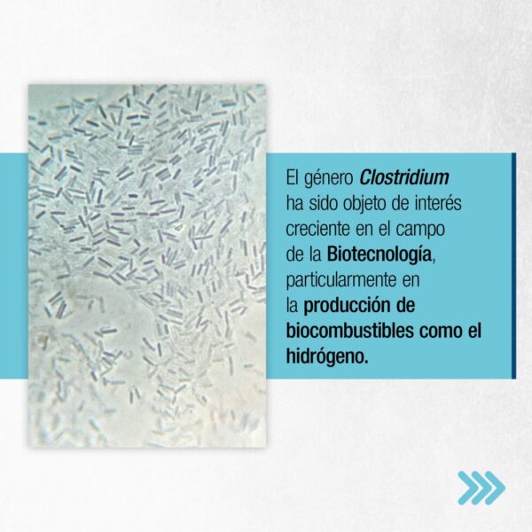 El género Clostridium, compuesto por bacterias anaerobias que se encuentran comúnmente en diferentes ambientes como el suelo, sedimentos y el tracto gastrointestinal de animales y humanos, ha sido objeto de interés creciente en el campo de la Biotecnología, particularmente en la producción de biocombustibles como el hidrógeno. Las especies del género Clostridium pueden producir hidrógeno a partir de azúcares simples que, a su vez, pueden ser obtenidos de diversas fuentes como residuos agrícolas y forestales, con alto contenido en lignocelulosa.