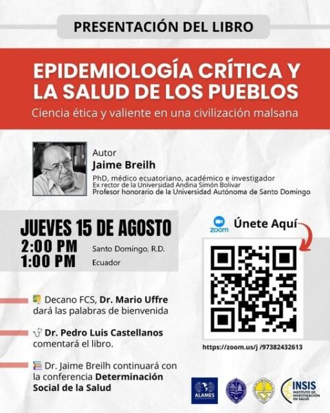 📢📚 ¡Acompáñanos en el lanzamiento del libro “Epidemiología crítica y la salud de los pueblos” de Jaime Breilh, director del CILABSalud de la Universidad Andina Simón Bolívar y Profesor Honorario de la Universidad Autónoma de Santo Domingo (UASD).