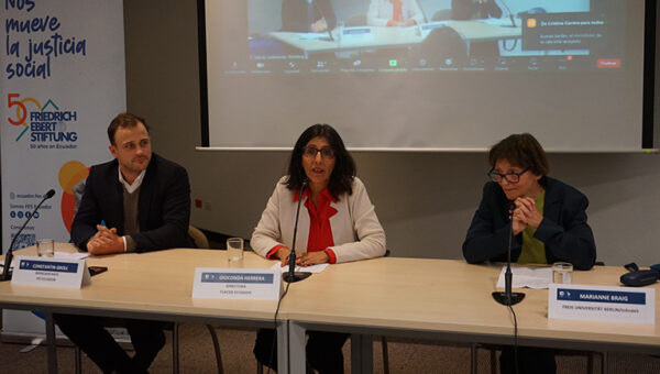 El acuerdo se firmó en el marco del conversatorio “Transiciones energéticas globales: Ecuador en perspectiva comparada”, organizado por ambas instituciones junto al proyecto trAndeS, coordinado por la Universidad Libre de Berlín (FU Berlin) y la Pontificia Universidad Católica del Perú (PUCP). En el conversatorio participó el doctor Reiner Hoffmann, vicepresidente de Friedrich Ebert Stiftung (FES) y la doctora María Cristina Vallejo, coordinadora docente de FLACSO Ecuador y fue moderado por la doctora Bárbara Fritz de trAndeS y la Universidad Libre de Berlín.