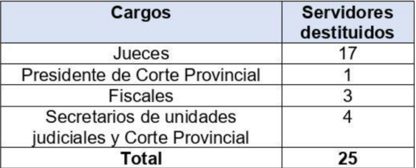 El Consejo de la Judicatura informó que hasta este 17 de octubre ha destituido a 25 funcionarios judiciales por estar investigados por presunta delincuencia organizada en los casos Metástasis, Plaga y Purga.