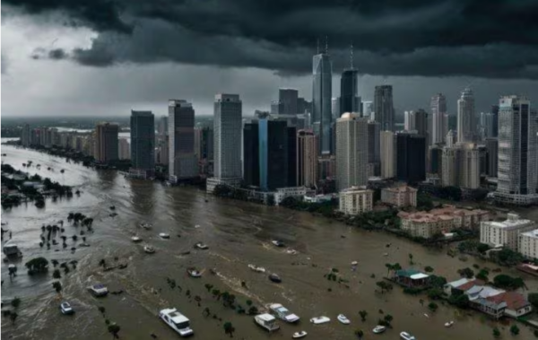 Las inundaciones extremas y las tormentas devastadoras son solo algunas de las consecuencias del cambio climático que ya están afectando a millones de personas en todo el mundo. Ilustración artística. Foto: Leonardo.ai / Christian Pérez