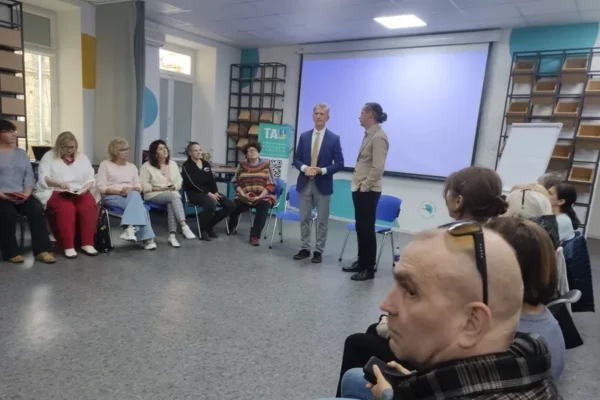 “No hay ni puede haber en ningún país suficientes profesionales para hacer frente a lo que está pasando, y tenemos que dar oportunidades a la gente para que los problemas puedan tratarse también en cada barrio, en cada comunidad”, dice sobre la idea que impulsa esta y otras de las muchas reuniones de este tipo que tienen lugar a diario en toda Ucrania.