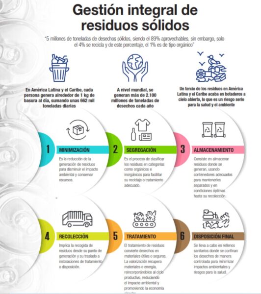 Una de las mayores dificultades en la gestión de residuos es la falta de segregación adecuada. Muchas personas no están conscientes de la importancia de separar los desechos orgánicos de los inorgánicos. Como resultado, todos estos residuos se mezclan en un mismo contenedor donde se puede encontrar desde plásticos, cartones y envases hasta residuos de alimentos o alimentos en mal estado que terminan en sitios de disposición final cada vez más grandes. En Ecuador, de los 221 municipios, 104 disponen sus residuos en botaderos a cielo abierto; 81 en rellenos sanitarios y 36 en celdas emergentes.