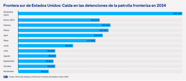 El endurecimiento de las medidas, a través de unaorden ejecutiva de junio de 2024 que restringe el ingreso y el asilo, acelera las deportaciones y contempla el cierre de la frontera ante ciertas circunstancias, está mostrando su impacto en los flujos migratorios.