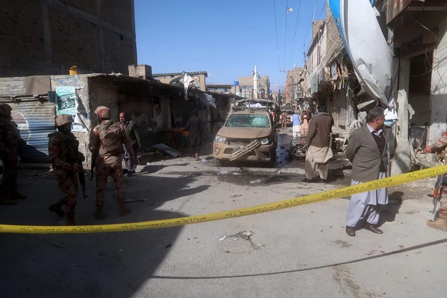 Oficiales paquistaníes en el escena de una explosión en Quetta, la capital de la agitada provincia de Baluchistán. EFE/EPA/Fayyaz Ahmed