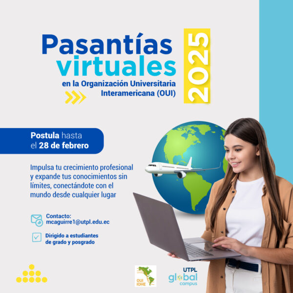 ¡Pasantías Virtuales! Si eres estudiante de grado o posgrado de la #UTPL, esta es tu oportunidad de realizar pasantías virtuales en la Organización Universitaria Interamericana (OUI) .