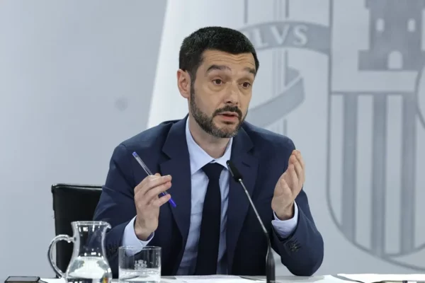 El ministro de Derechos Sociales, Consumo y Agenda 2030, Pablo Bustinduy, durante la rueda de prensa posterior al Consejo de Ministros, este martes en Madrid. EFE/Juan Carlos Hidalgo