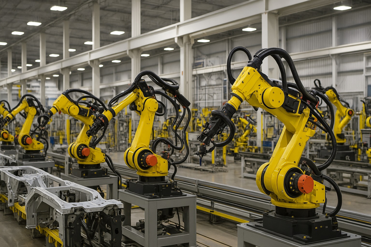 Foto de portada: Robots industriales trabajando en una fábrica moderna en China.