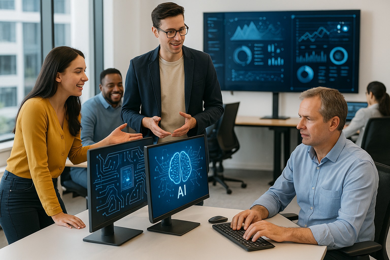 Foto de portada: Profesionales en un entorno de oficina moderna, apoyados en sistemas de inteligencia artificial.