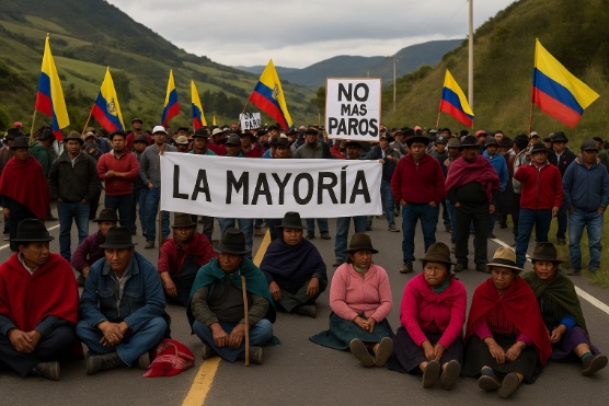 Imagen de portada: Protesta de indígenas y campesinos bloqueando una carretera rural en Ecuador.